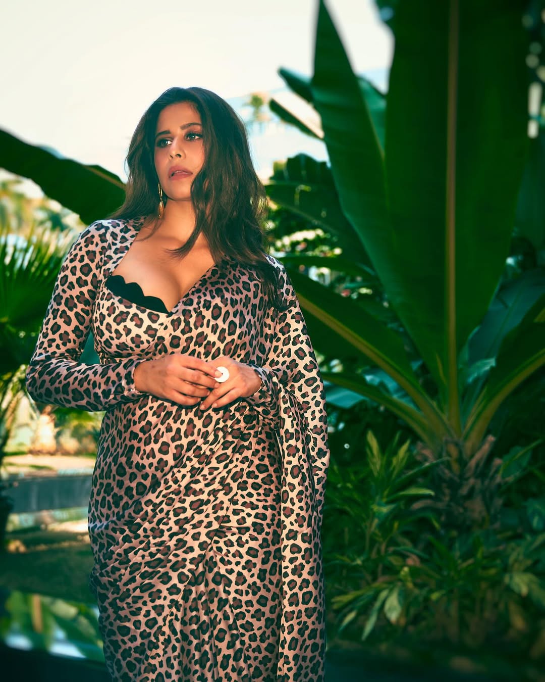 सईने बिबट्या प्रिंट असलेली साडी आणि मॅचिंग ब्लाऊज परिधान केला होता.